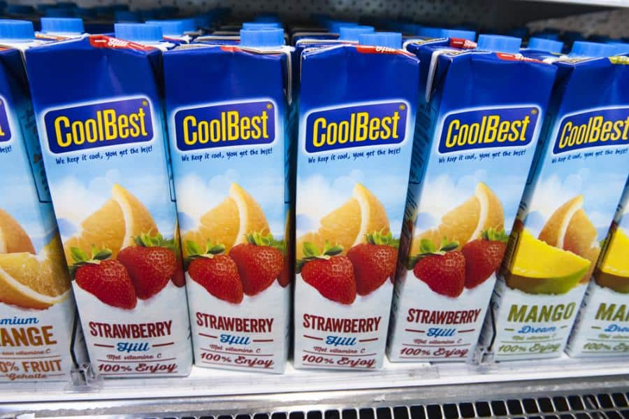 Fruityline sinaasappel-, aardbeien sap